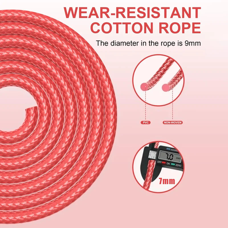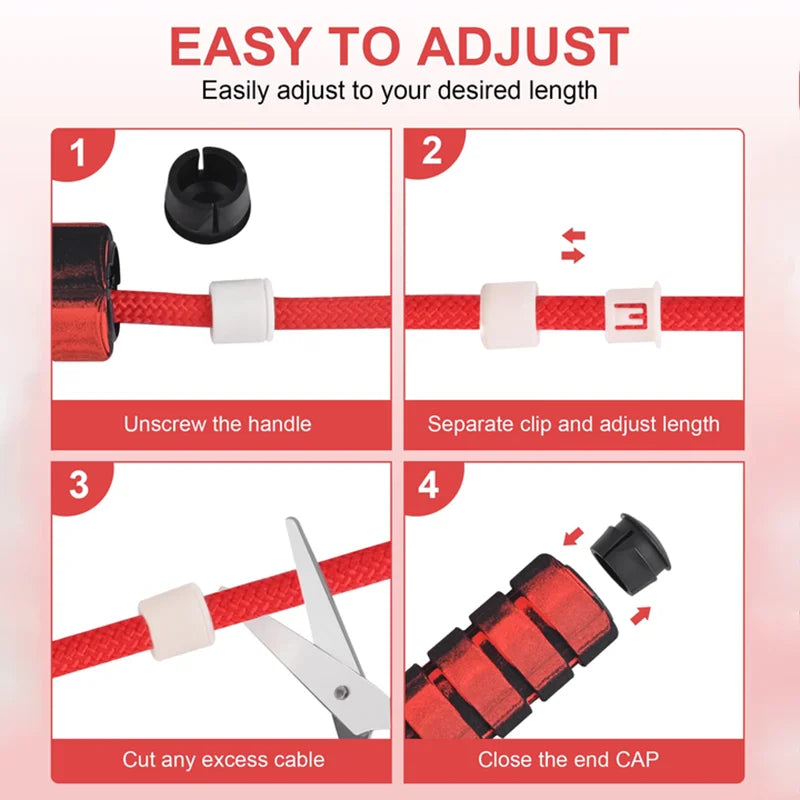Corda per saltare dal design moderno, realizzata con manici rivestiti in materiale antiscivolo per una presa salda e confortevole. La corda intrecciata in nylon rosso con dettagli neri garantisce resistenza all’usura e scorrevolezza nei movimenti. Perfetta per allenamenti cardio, riscaldamento e tonificazione, ideale sia per principianti che per atleti esperti.